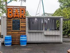 Container-style retail row along dog park trail